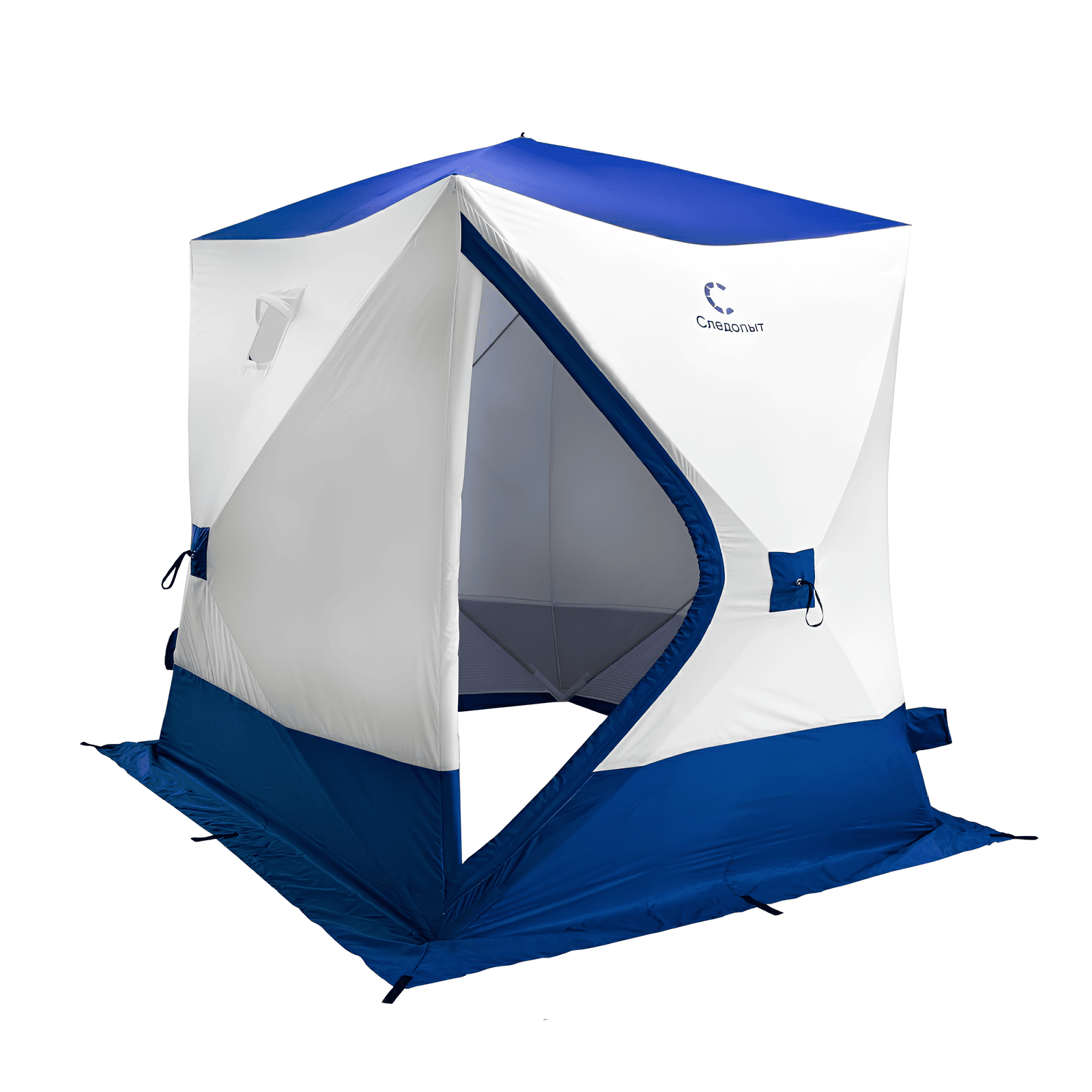 - Палатка-куб. В палатках кубической формы больше места внутри, где можно вытянуться и встать в полный рост. Поэтому их часто выбирают любители ночных комфортабельных рыбалок. Установка занимает не намного больше времени, чем у предыдущих моделей. Однако они отличаются большим весом, парусностью и дороговизной. Кроме того, куб медленнее нагревается, поэтому к нему необходимо брать печку. Но тех рыбаков, кто выбирает «кубы», это не смущает. Обычно они не таскают всё это на себе.