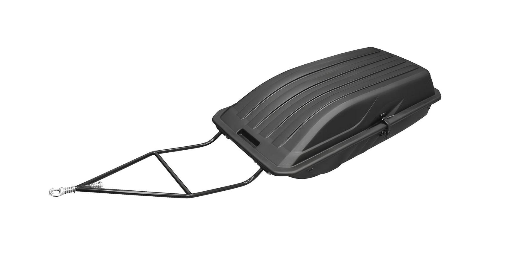 Универсальная модель укомплектована крышкой, которая позволяет укрывать снасти. При любом круговороте багаж останется в целости и сохранности. По инструкции волокуша рассчитана на 320 килограммов груза. Легко закрепляется к мотособаке: дышло пристёгивается быстро и крепко. В зимний холод можно проделать всю работу в перчатках. Крышка плотно закрывается. Сцепной узел при торможении и рывковых движениях смягчает ударные нагрузки. Дышло сконструировано под таким углом, чтобы при складывании оно не выпирало и не задевалось. Классический вариант волокуши имеет высокие борта, кольцо сцепления и дышло с необходимой кривизной. Стеклопластик рассчитан выдерживать минусовую температуру до 50 градусов.