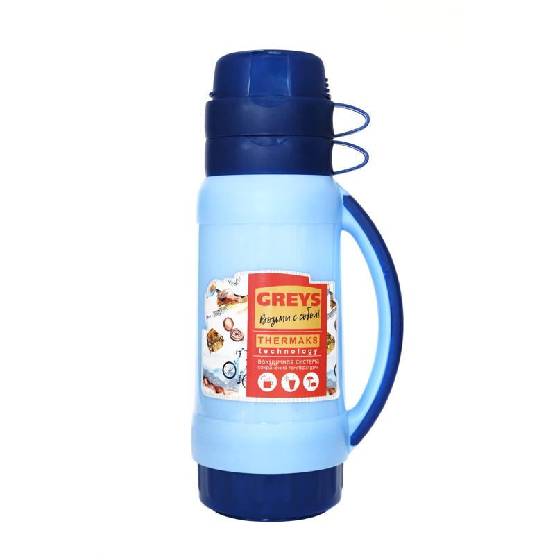 Термос Greys SM-202 1л (со стеклянной колбой, голубой)